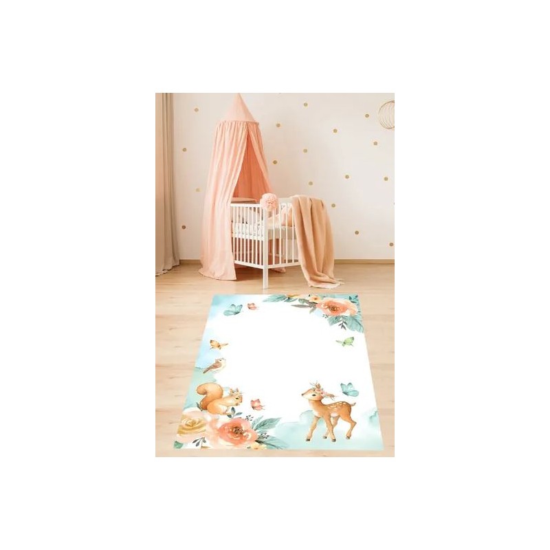 Детският килим е създаден с внимание към детайлите и комфорта. Произведен с помощта на дигитален печат, този килим притежава нехлъзгаща основа и височина на влакната от 10 мм, което гарантира безопасност и удобство при употреба. Килимът е изработен от висококачествен плат, който не задържа петна и не се рони. Лесен за поддръжка, може да се пере в пералня при деликатна програма на 30 градуса, без риск от избледняване, ако се спазват условията за пране. Препоръчва се да не използвате белина и избелващи препарати. Предлага се в различни размери, които могат да бъдат избрани според вашите предпочитания.